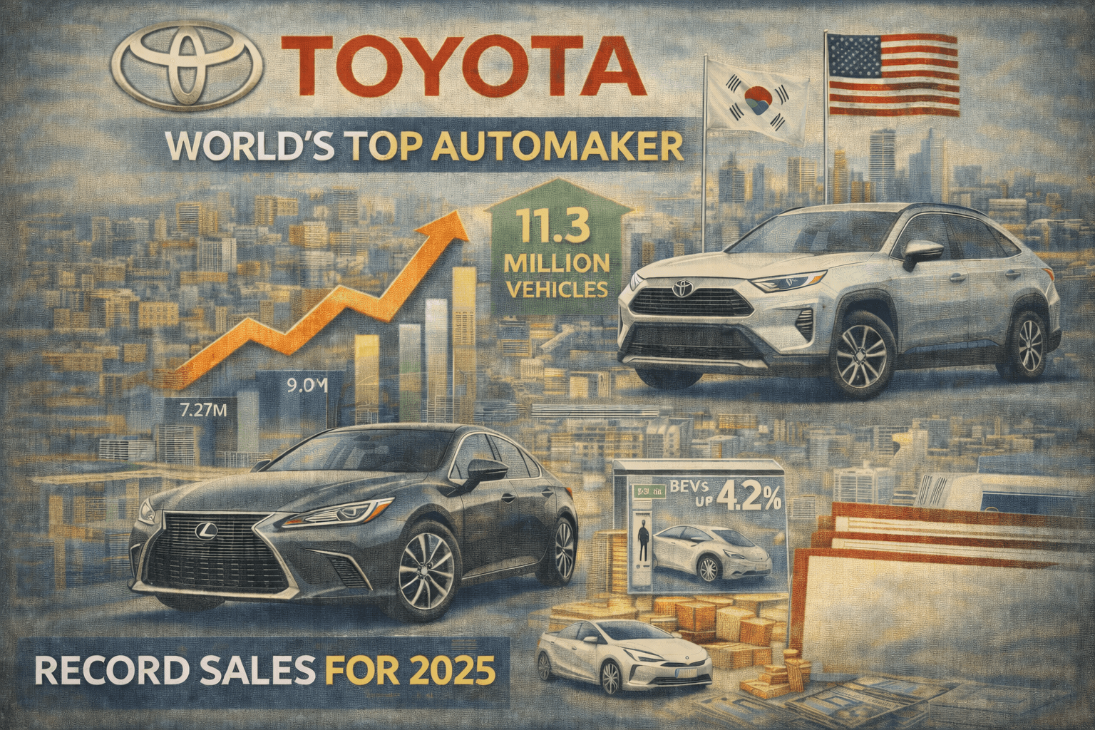 Including subsidiaries Daihatsu Motor and Hino Motors, Toyota’s group-wide sales climbed 4.6% to a record 11.3 million vehicles in 2025, cementing its global lead.